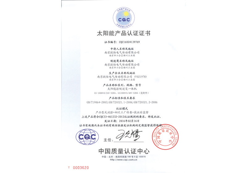 • 太陽(yáng)能產(chǎn)品認(rèn)證證書